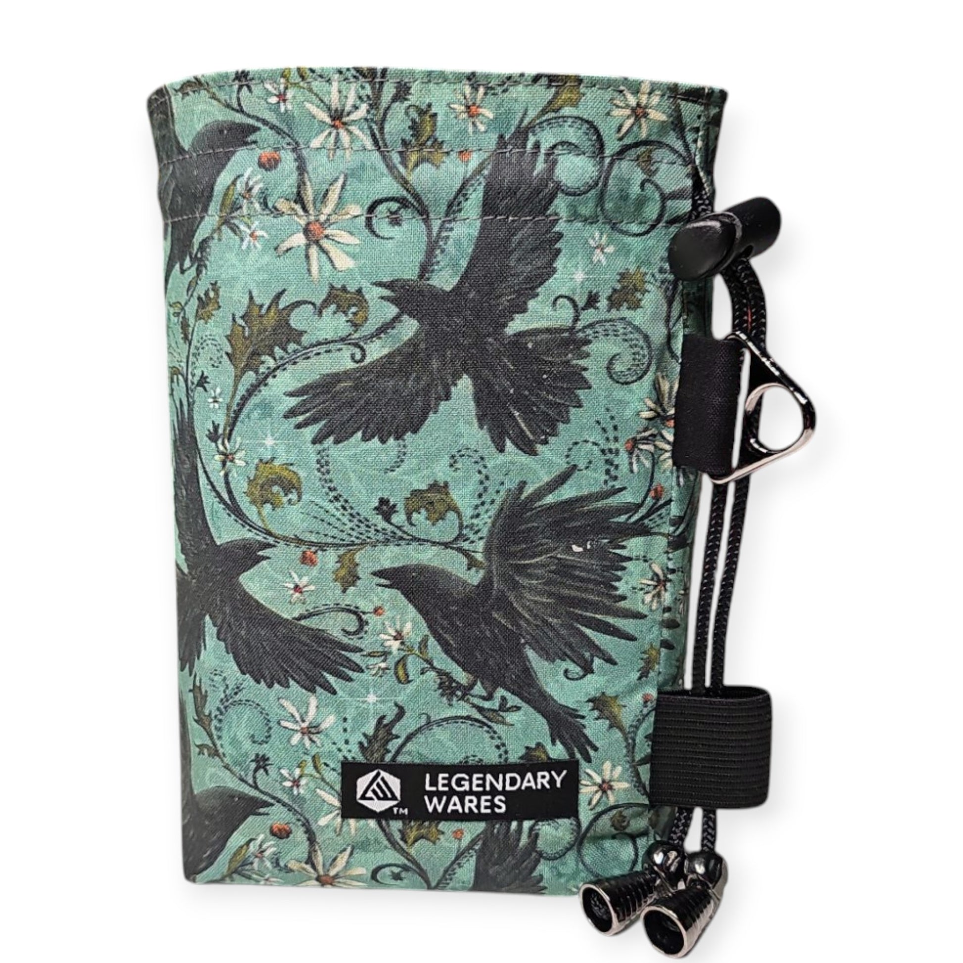 Spacious enough to hold a full horde of dice or small accessories, the bag closes securely with a sturdy drawstring to keep your treasures safe. Whether you're casting spells, rolling initiative, or preparing for a fateful encounter, let the wings of the raven guide your hand.